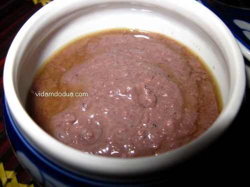 Hành khô đập dập phi thơm với dầu ăn, chú ý để lửa than khi thả tép vào, vì tép khô rất máu cháy, cho mật và nước mắm vào đảo đều tay cho đến khi cạn nước, tắt bếp thì cho ớt bột và tiêu vào trộn đều.